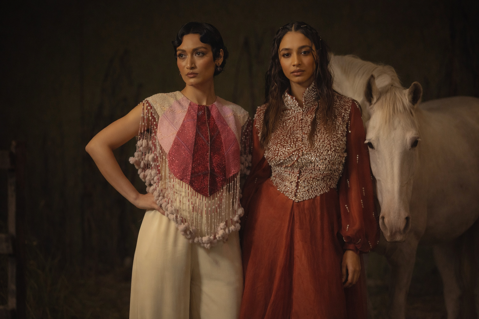 Wild Cheval is an ode to inner strength and quiet freedom. Inspired by the silent power shared by women and horses, the collection blends earthy tones, fluid silhouettes, and organic details to express a balance of softness and strength.
