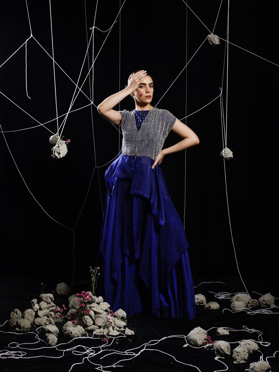 Éclat meaning ostentatious display was started in October 2014 as an occasion wear brand for women. Each ensemble showcases the brilliant play of pattern making and draping with precision to finish and technique